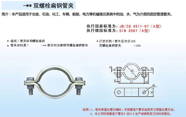 產(chǎn)品特點(diǎn):扁鋼管夾安裝簡(jiǎn)便快捷,是管道施工的優(yōu)良產(chǎn)品。