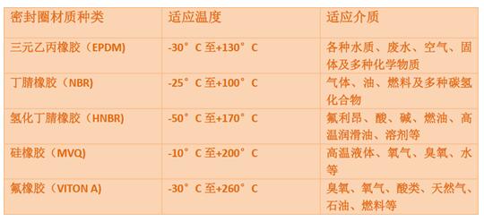 橡膠材質(zhì):三元乙丙橡膠、硅膠、氟膠、丁腈橡膠等。